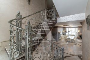 Первый этаж: просторная прихожая с встроенными шкафами; стильная кухня-столовая, полностью укомплектованная бытовой техникой; просторная гостиная с несколькими зонами: столовая, музыкальная с роялем, каминная и зона отдыха с выходом на террасу; гостевая комната и кабинет, с/у с душем.