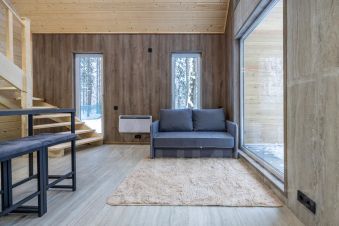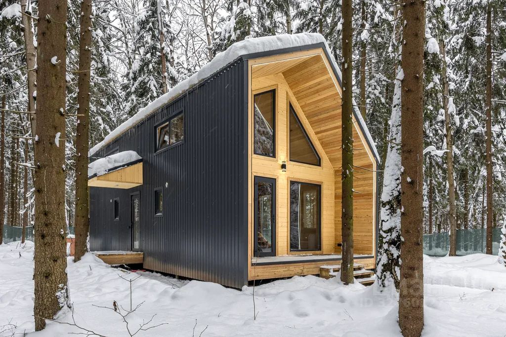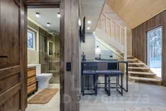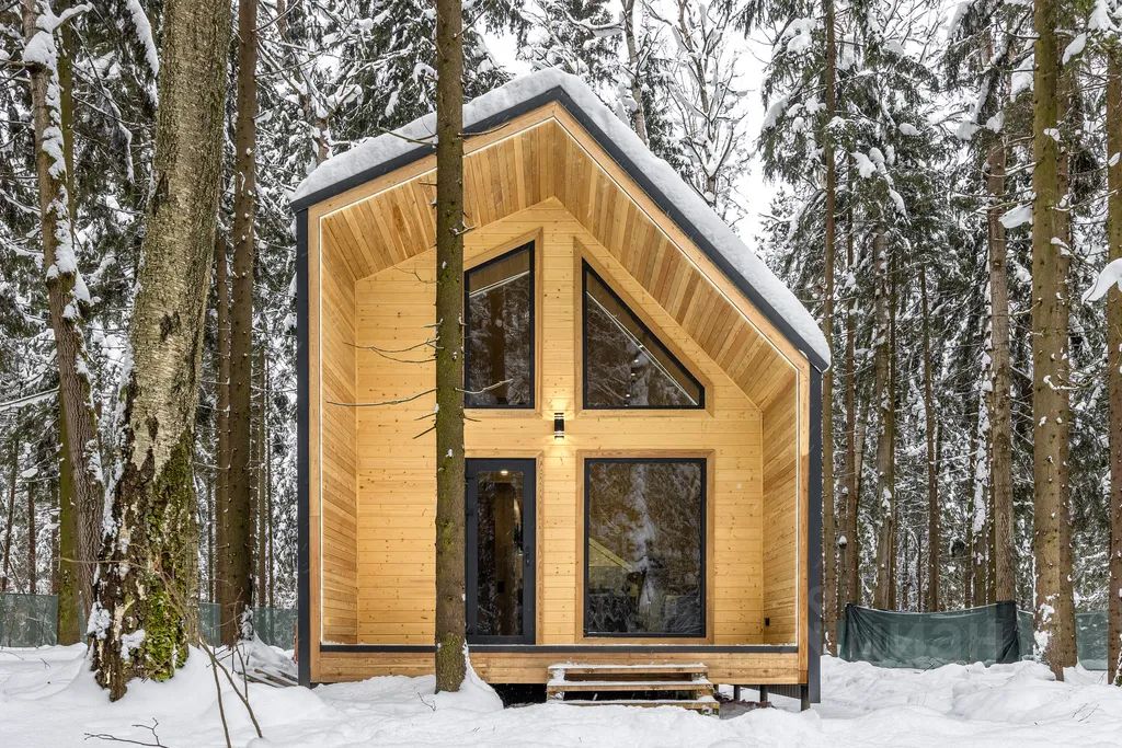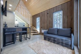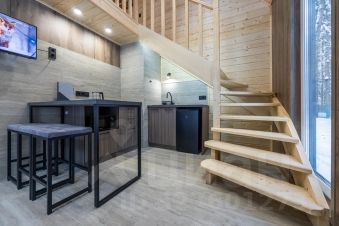 Современный и уютный двухэтажный дом 40 м² вместимостью до 3-х человек с отдельным входом, полноценной кухней, санузлом и спальней на втором этаже, с террасой и зоной для барбекю, в лесу на берегу Клязьминского водохранилища в 10-ти км от МКАД.
