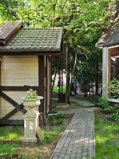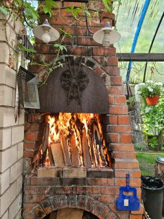 На участке зона отдыха - летняя кухня, с мангалом.