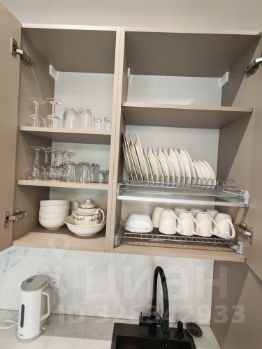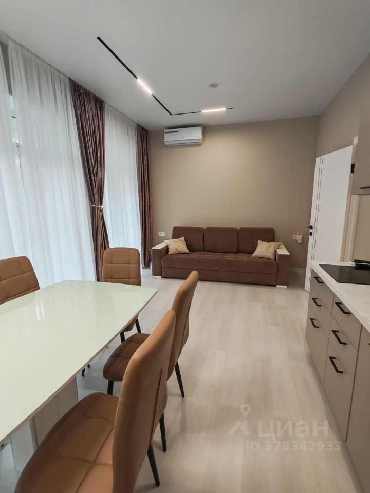 В гостиной установлен телевизор со Smart TV, музыкальная колонка и находится кухня со всей бытовой техникой: электроплита, посудомоечная машина, духовой шкаф с функцией СВЧ, холодильник, электрический чайник, посуда, диван раскладной 2-х спальный.