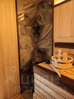 На первом этаже расположены кухня-гостиная, санузел, душевая, сауна (электропечь).