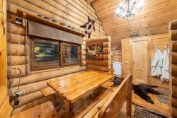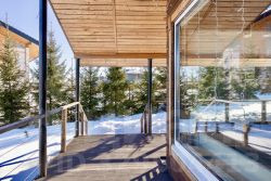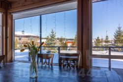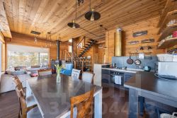 Дом выполнен в стиле классического шале. Сидя в кресле у камина и глядя в огромные панорамные окна, кажется, будто вы переноситесь прямо в Альпы.