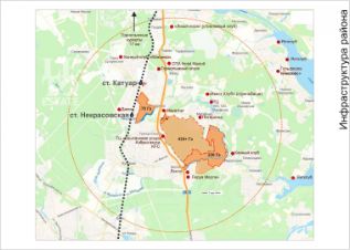 Участок окружен лесом, проведено межевание участка под строительство коттеджного поселка, парк-отель. Все согласования на коммуникации есть.