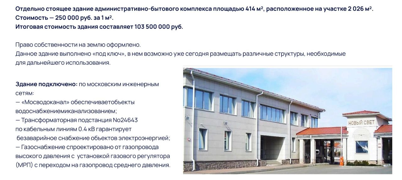 Отдельно стоящее здание административно-бытового комплекса площадью 414 м², расположенное на участке 2 026 м².