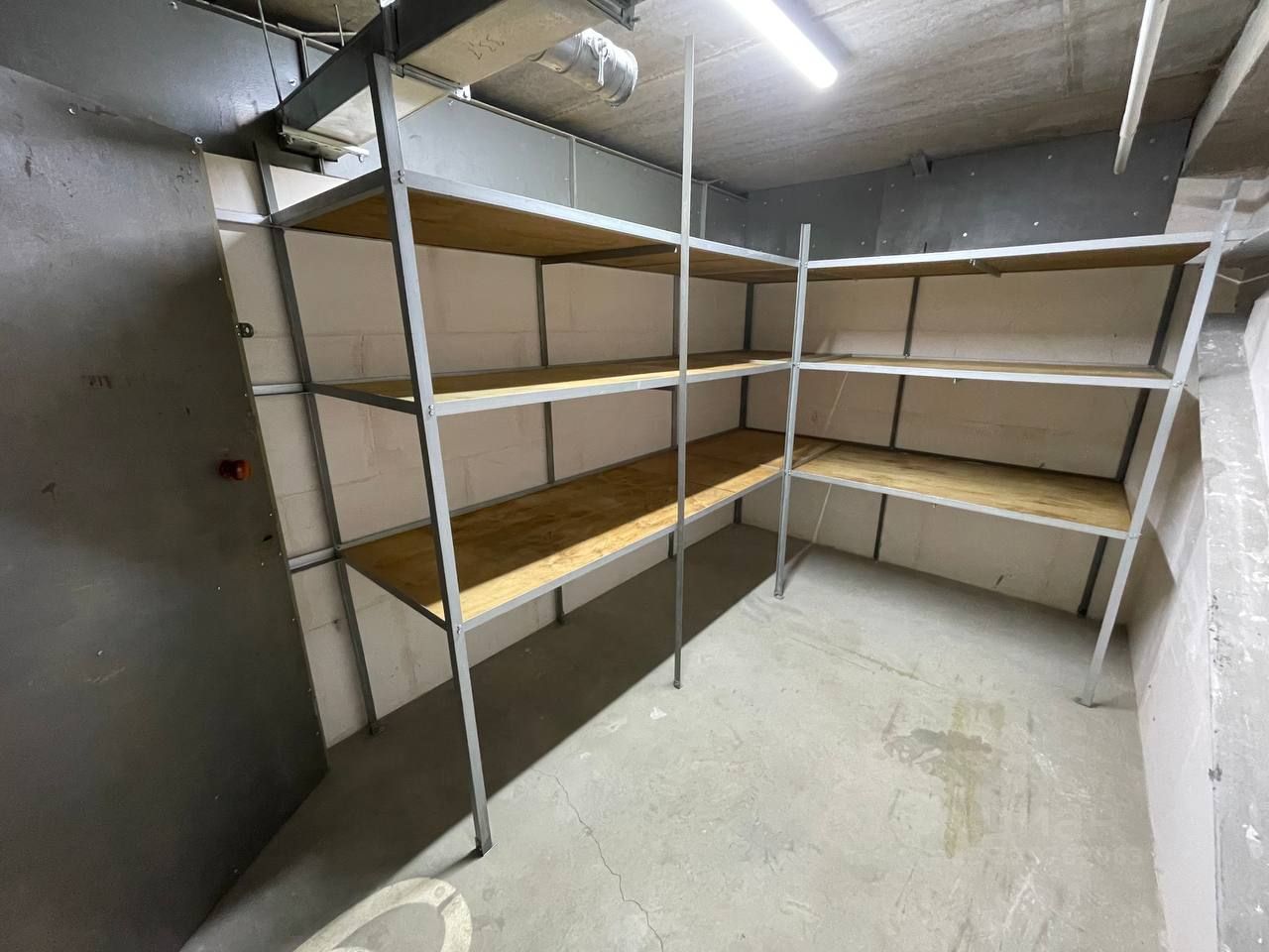 Сделаны очень качественные, широкие стеллажи из металлич. уголка , выдержавшие большие нагрузки. Металлическая входная дверь с двумя замками.