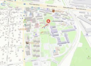Здание располагается в центре жилого массива. Большой автомобильный и пешеходный трафик вдоль помещения.