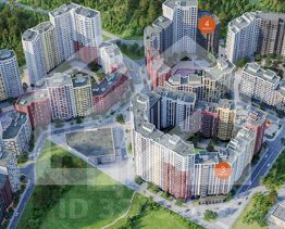 -ЖК состоит из 5-ти 22-этажных корпусов, рассчитанных на 4 378 квартир;