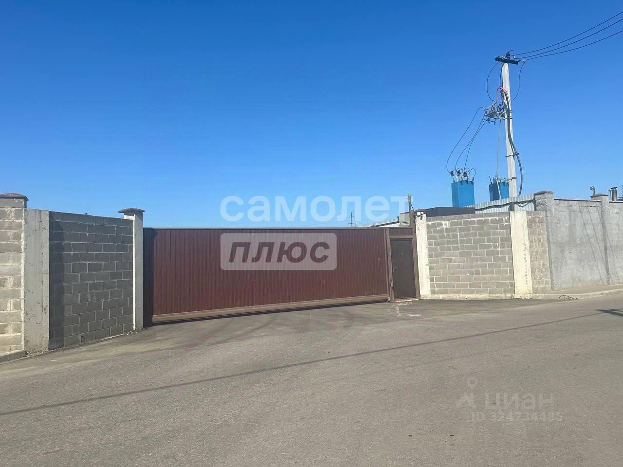 Участок полностью асфальтирован, огорожен бетонным забором, имеет три въезда с автоматическими воротами, на участке стоят 3 ангара не капитальных по 1000 м. каждый