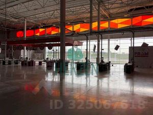 Площадь зала 10 002,5 кв.м. Шаг колон 20 х 12 м.