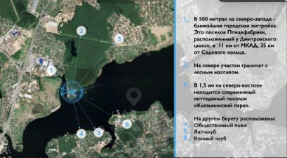 Престижное расположение: берег залива Красная Горка — естественного нерестилища рыбы, с живописными видами и прямым доступом к воде.Особая категория земель: участки относятся к особо охраняемым территориям, гарантируя экологическую чистоту района.Гибкое назначение: основное разрешённое использование — под парусный центр, но возможна реализация других рекреационных проектов.Транспортная доступность: 11 км от МКАД по Дмитровскому шоссе, 35 км от Садового кольца.Первая береговая линия: прямой выход к воде позволяет обустроить причалы, пляжи и зоны отдыха.