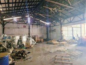 На участке имеется зарегистрированный Ангар 402 м. Кв. И бытовки. Электрическая мощность 150 квт.