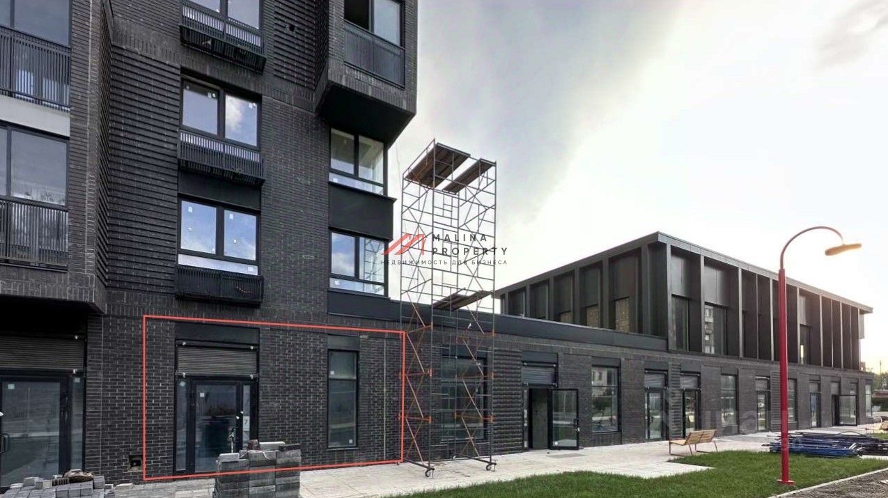 Помещение на первой линии напротив остановки, примыкает к стилобату. Рядом нет современных торговых точек. 3% соотношение коммерческих площадей к жилым в проекте.
