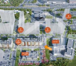 -комплекс состоит из 6 корпусов переменной этажности (от 8 до 16 этажей);