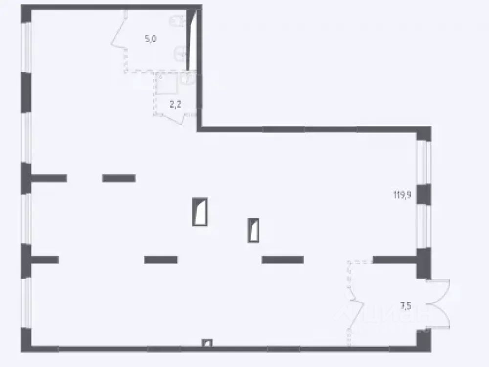 1 этаж, общая площадь 135.4 кв.м. Отдельная входная группа. Высота потолка 4 м.