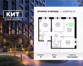 Продаётся 3-к квартира 72.04 кв.м. с чистовой отделкой в ЖК "КИТ2" на 23-м этаже 25 этажного дома.Жилой комплекс "Кит 2" спроектирован в урбанистической концепции "Город в Городе".