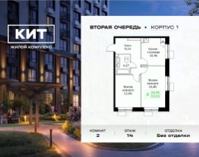 Продаётся 2-к квартира 53.03 кв.м. без отделки в ЖК "КИТ2" на 14-м этаже 25 этажного дома.Жилой комплекс "Кит 2" спроектирован в урбанистической концепции "Город в Городе".
