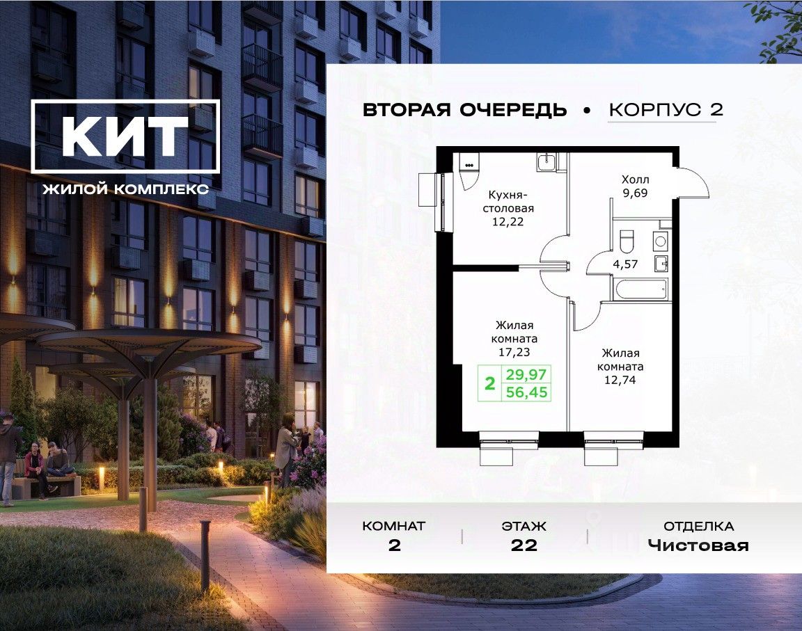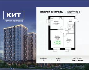 Продаётся 2-к квартира 56.45 кв.м. с чистовой отделкой в ЖК "КИТ2" на 22-м этаже 25 этажного дома.Жилой комплекс "Кит 2" спроектирован в урбанистической концепции "Город в Городе".