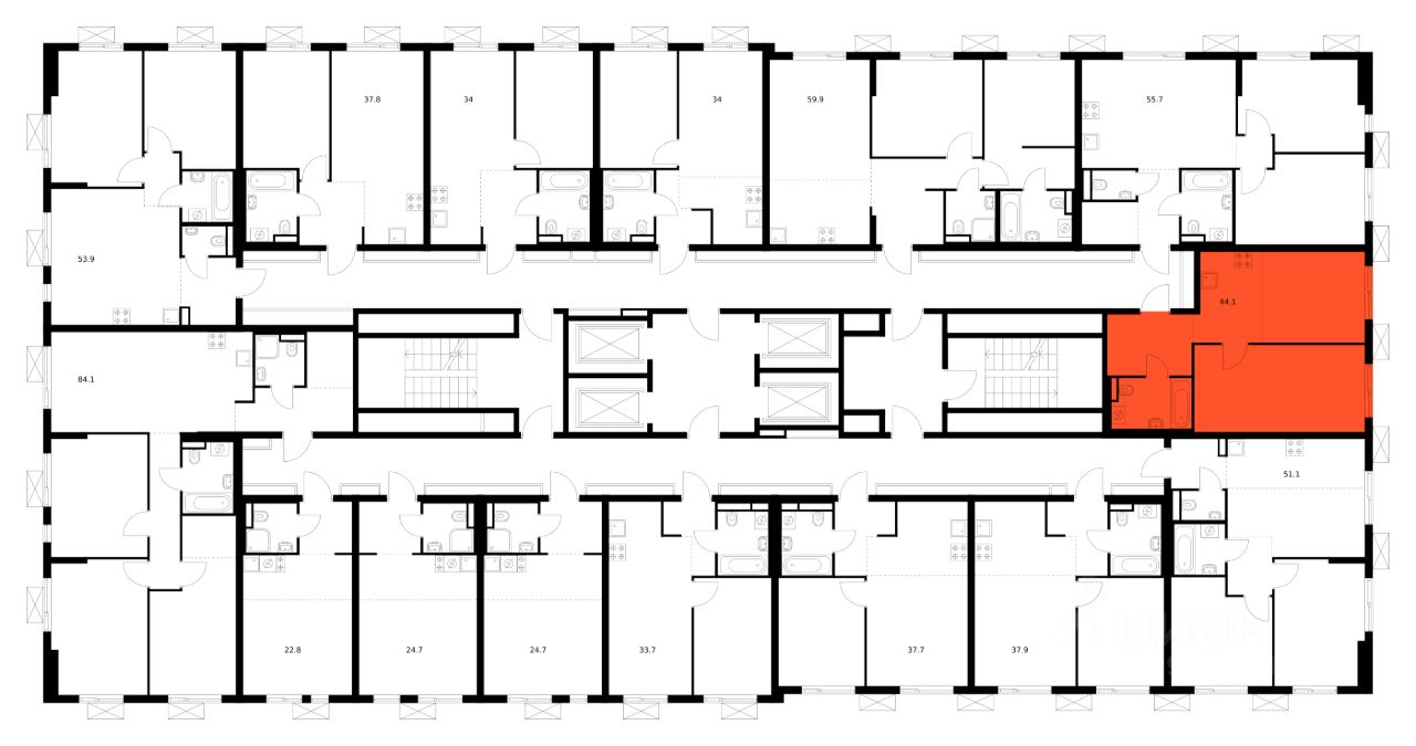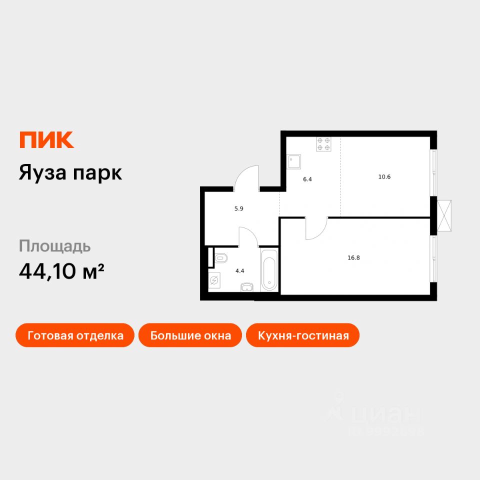 Продаётся 1-комн. квартира площадью 44,1 кв.м на 24 этаже 24 этажного дома (Корпус 7, Секция 1) проекта ПИК Яуза парк. Светлый просторный подъезд на уровне земли, функциональная планировка, большие окна, c отделкой.