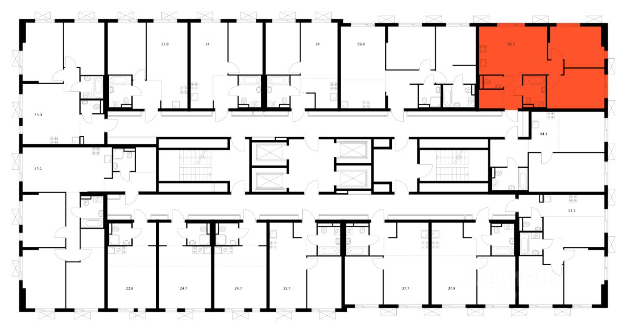 Продаётся 2-комн. квартира площадью 55,7 кв.м на 24 этаже 24 этажного дома (Корпус 7, Секция 1) проекта ПИК Яуза парк. Светлый просторный подъезд на уровне земли, функциональная планировка, большие окна, c отделкой.