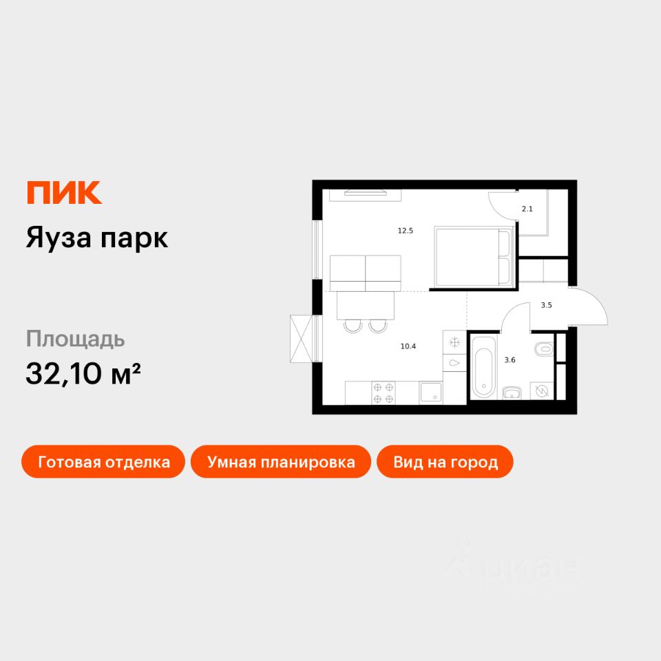 Продаётся 1-комн. квартира площадью 32,1 кв.м на 15 этаже 25 этажного дома (Корпус 9, Секция 1) проекта ПИК Яуза парк. Светлый просторный подъезд на уровне земли, функциональная планировка, большие окна, c отделкой.