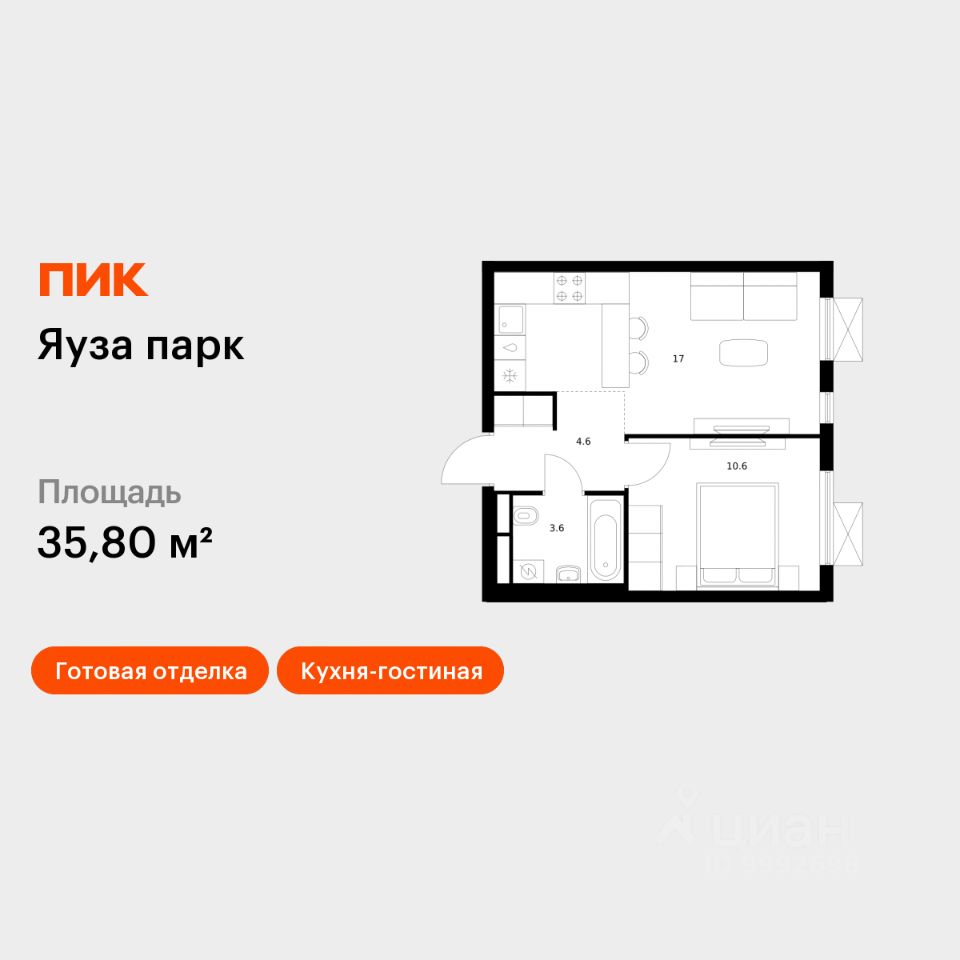 Продаётся 1-комн. квартира площадью 35,8 кв.м на 2 этаже 25 этажного дома (Корпус 9, Секция 1) проекта ПИК Яуза парк. Светлый просторный подъезд на уровне земли, функциональная планировка, большие окна, c отделкой.