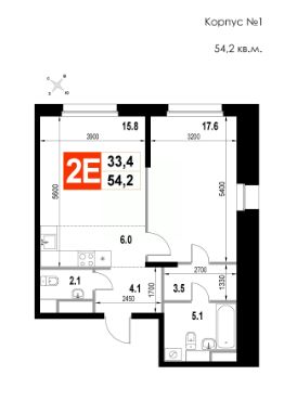 2-комн. квартира, 54,2 м²