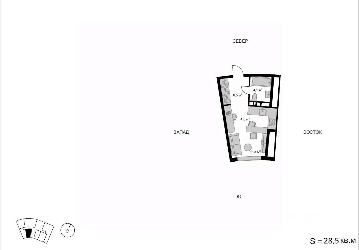 Студия от 28,4 м²
