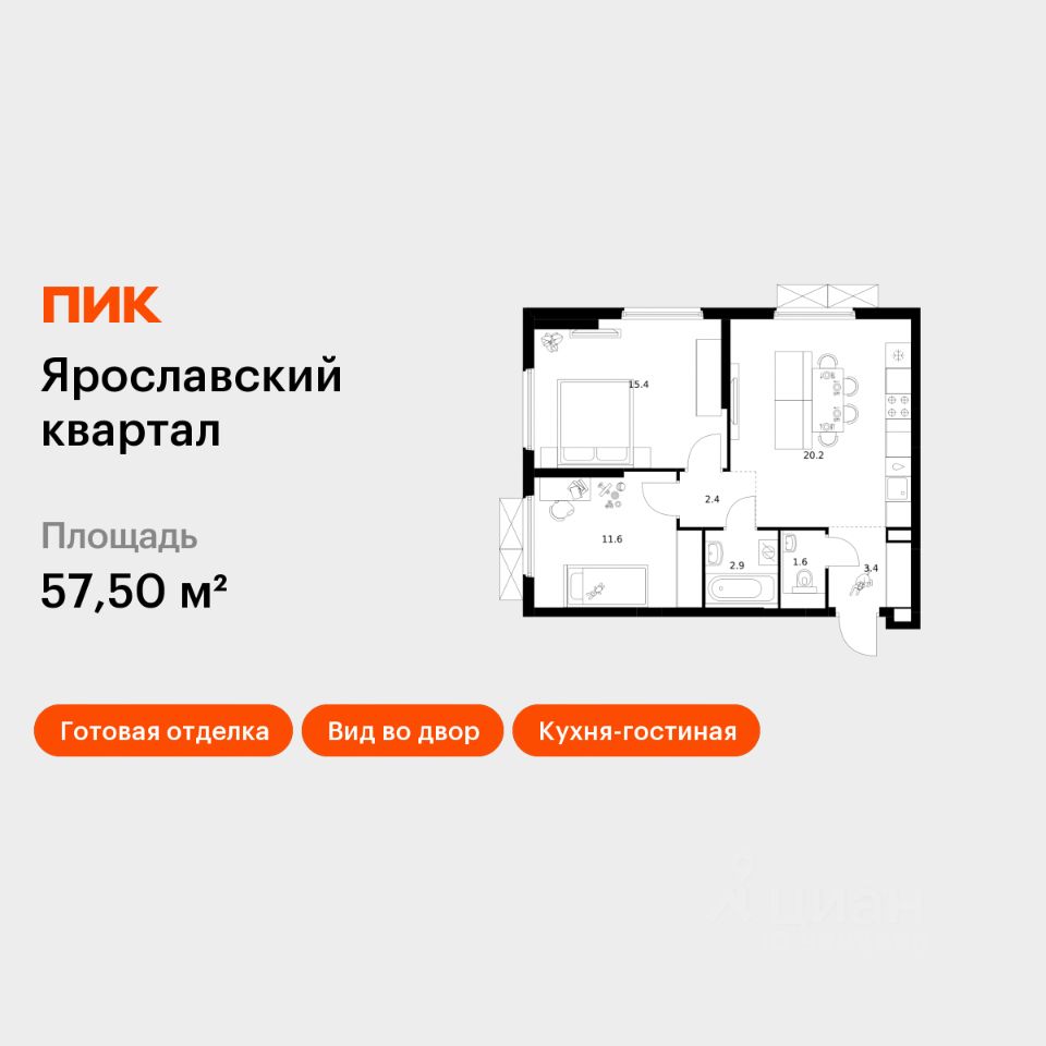 Продаётся 2-комн. квартира площадью 57,5 кв.м на 20 этаже 25 этажного дома (Корпус 2.5, Секция 2) проекта ПИК Ярославский квартал. Светлый просторный подъезд на уровне земли, функциональная планировка, большие окна, c отделкой.