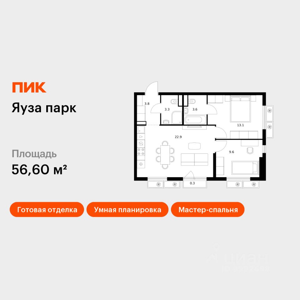 Продаётся 2-комн. квартира площадью 56,6 кв.м на 2 этаже 25 этажного дома (Корпус 11, Секция 1) проекта ПИК Яуза парк. Светлый просторный подъезд на уровне земли, функциональная планировка, большие окна, c отделкой.