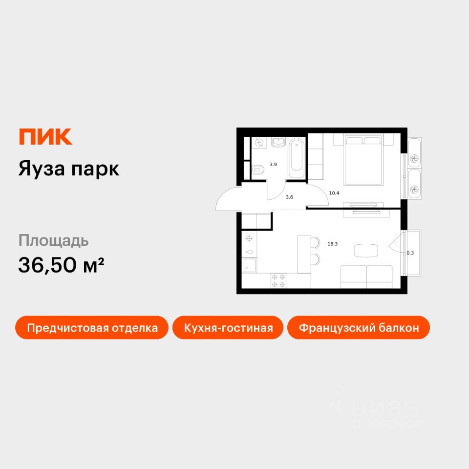Продаётся 1-комн. квартира площадью 36,5 кв.м на 2 этаже 24 этажного дома (Корпус 12, Секция 1) проекта ПИК Яуза парк. Светлый просторный подъезд на уровне земли, функциональная планировка, большие окна, предчистовая отделка.