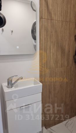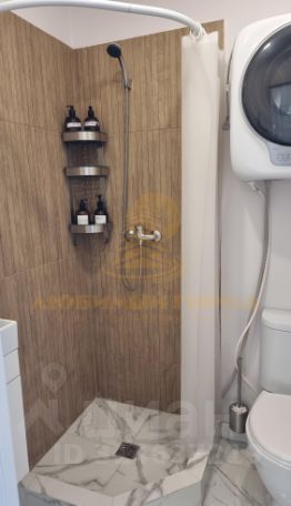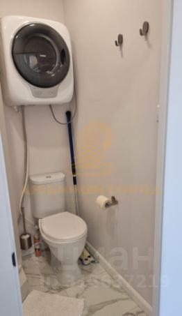 - в сан. узле подвесной шкаф с раковиной, зеркало с подсветкой, унитаз, подвесная стиральная машинка, душевой поддон, всё в Итальянской плитке.