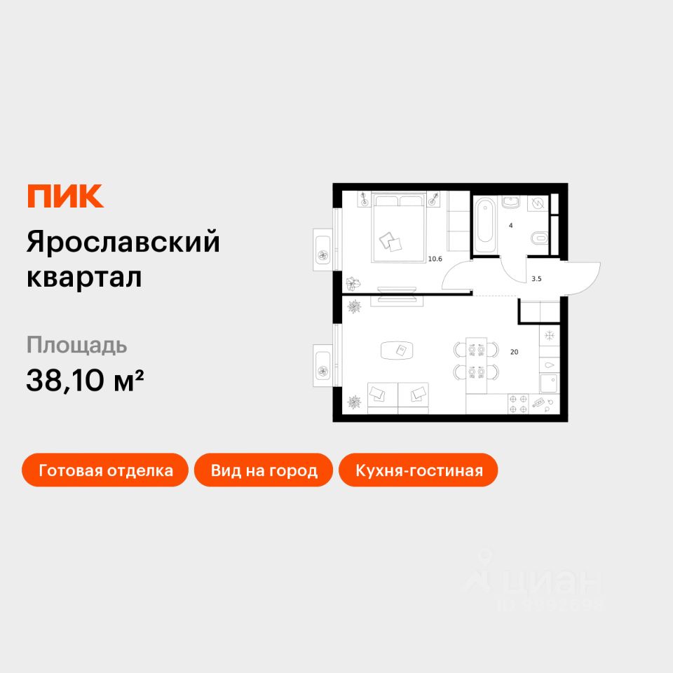 Продаётся 1-комн. квартира площадью 38,1 кв.м на 18 этаже 25 этажного дома (Корпус 2.2, Секция 1) проекта ПИК Ярославский квартал. Светлый просторный подъезд на уровне земли, функциональная планировка, большие окна, c отделкой.