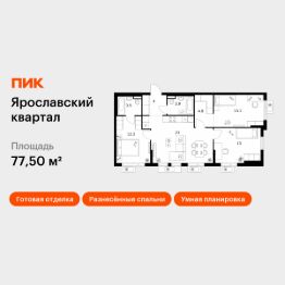 Продаётся 3-комн. квартира площадью 77,5 кв.м на 16 этаже 25 этажного дома (Корпус 2.4, Секция 1) проекта ПИК Ярославский квартал. Светлый просторный подъезд на уровне земли, функциональная планировка, большие окна, c отделкой.