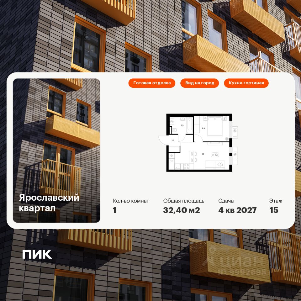 Продаётся 1-комн. квартира площадью 32,4 кв.м на 15 этаже 25 этажного дома (Корпус 2.4, Секция 1) проекта ПИК Ярославский квартал. Светлый просторный подъезд на уровне земли, функциональная планировка, большие окна, c отделкой.