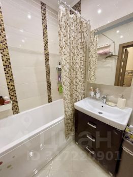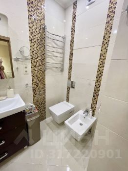 Ванная комната отличается продуманностью, в которой уместилась глубокая ванна, раковинный гарнитур, унитаз и даже биде, со скрытыми полками.
