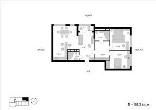 3-комн. квартира, 86,3 м²