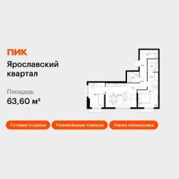 Продаётся 2-комн. квартира площадью 63,6 кв.м на 22 этаже 25 этажного дома (Корпус 2.5, Секция 2) проекта ПИК Ярославский квартал. Светлый просторный подъезд на уровне земли, функциональная планировка, большие окна, c отделкой.