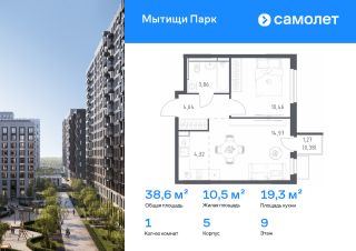 Предлагается 1-комнатная квартира комфорт-класса 38,63 кв.м в корпусе 5 на 9 этаже, в ЖК "Мытищи Парк"