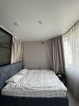 Зона спальни отделена стеклянной перегородкой, что позволяет попадать свету в зал, при желании есть штора для уединения от гостей. В спальне эркерные окна и есть возможность установки кондиционера. Подсветка у изголовья кровати, розетки с двух сторон от кровати.