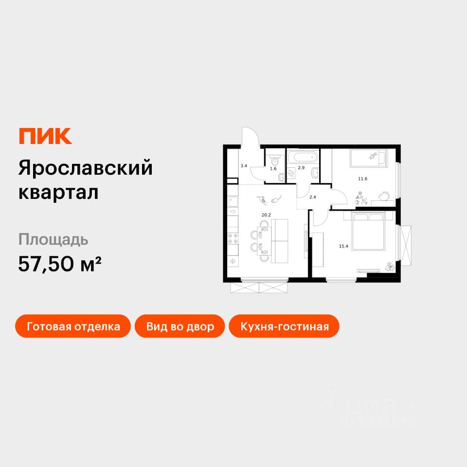 Продаётся 2-комн. квартира площадью 57,5 кв.м на 25 этаже 25 этажного дома (Корпус 2.5, Секция 2) проекта ПИК Ярославский квартал. Светлый просторный подъезд на уровне земли, функциональная планировка, большие окна, c отделкой.