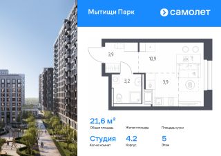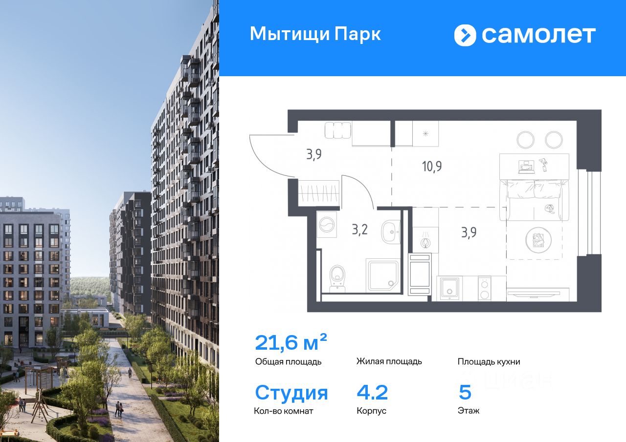 Строим кварталы для жизни с заботой о будущем. Предлагается квартира студия комфорт-класса 21,6 кв.м в корпусе 4.2 на 5 этаже, в ЖК "Мытищи Парк"