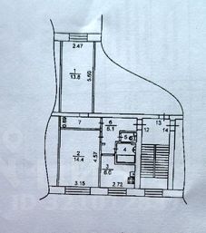 Общая площадь: 45,8 кв.м/ жилая 28,2 (14,4+13,8 изолированные)/ кухня 6 кв.м./санузел раздельный/без балкона.