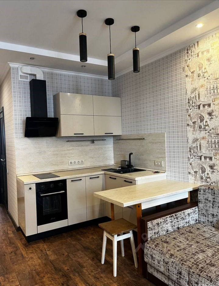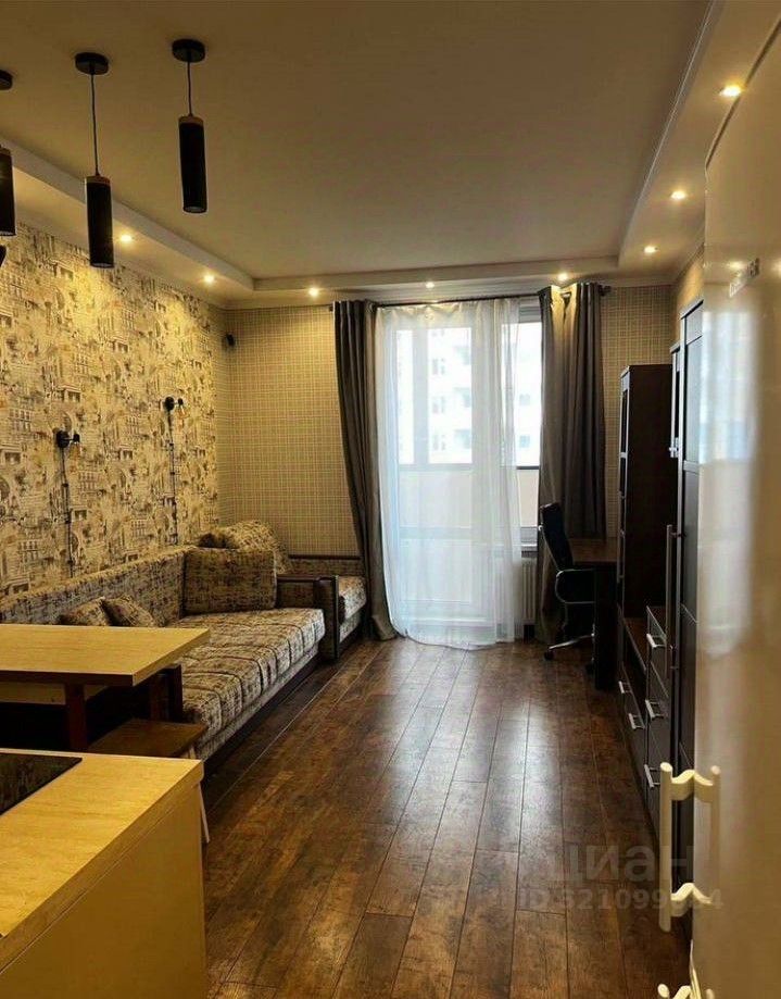 Квартира с хорошим ремонтом (сделана шумоизоляция стен, уложен бельгийский ламинат, в сан. узле оборудован теплый пол), фирменной мебелью и техникой (немецкая ванна "Kaldewei", кухня "Стильные кухни", гостиная "Артис", диван "Moon"), планировка следующая: зона кухни, зона ТВ со спальным местом, совмещенный санузел, прихожая, лоджия.