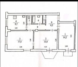 71.4 кв.м. ( без учета балконов) /14.2-15.4-17.0/9.7 кухня, два открытых балкона. Все комнаты изолированы , высота потолков 3м во всей квартире, сталинка. Санузел раздельный.Большой квадратный коридор с кладовой. Отличная удобная планировка, кухня 9,7м2 без газовой колонки, что важно.Во всех комнатах и на кухне установлены двухкамерные стеклопакеты с откосами и подоконниками, заменены радиаторы отопления. Квартира под ремонт, без мебели. Без перепланировок.