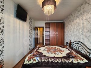 Квартира в доме 1999 года постройки. Планировка: слева от входной двери кухня, за ней большая комната. Дальше за комнатой лоджия, вход - из коридора. Напротив лоджии две спальни со своими лоджиями. В конце коридора раздельный санузел и встроенный шкаф.