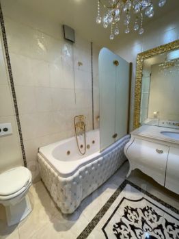 Просторная, светлая квартира с удобной планировкой, большая кухня-гостиная и 3 раздельные комнаты, 3 утепленные лоджии с теплыми полами, 2 санузла. В квартире был произведен качественный дизайнерский евроремонт с использованием дорогих материалов. Пол -паркет в комнатах, плитка-кухня и балконы, немецкая сантехника, мебель привезена из Италии. В квартире остается встроенный кухонный гарнитур с встроенной немецкой бытовой техникой Miele, посудомоечная машинка, холодильник, 2 кондиционера, также установлена система видеонаблюдения и сигнализация. В доме есть подземная парковка. Остальная мебель в квартире обсуждается, возможна продажа.