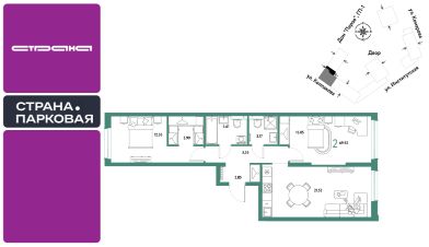 2комнатная квартира площадью 69,92кв. м. на 9 этаже от застройщика Страна Девелопмент.