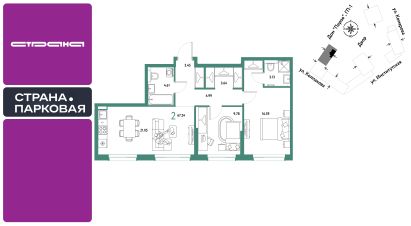 Жилой комплекс "Страна.Парковая" — новый квартал в самом центре Мытищ, который вдохновляет на яркую жизнь. Рядом — всё необходимое: метро Медведково, несколько парков, школы и детсады, ТРК "Красный кит" и др. Также вы сможете без проблем добраться до столицы — Кремль в 65 минутах езды на авто. Архитектура с объёмными декоративными фасадами гармонирует и с городом, и с природой, а приватные дворы, наполненные зеленью, помогают скрыться от суеты и отдохнуть. Всё задумано так, чтобы вы смогли проникнуться главной идеей комплекса — вдохновение жизнью каждый день.