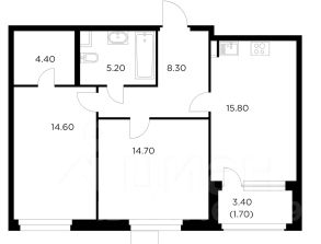 Квартира находится на 9 этаже 17 этажного монолитно кирпичного дома. Общая площадь квартиры 64,7 кв.м. Прихожая 8,3 кв.м, просторная кухня 15,8 кв.м, комнаты 14,6/14,7 кв.м, санузел, гардеробная, лоджия.