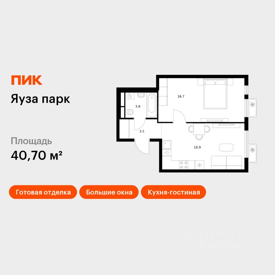 Продаётся 1-комн. квартира площадью 40,7 кв.м на 19 этаже 25 этажного дома (Корпус 11, Секция 1) проекта ПИК Яуза парк. Светлый просторный подъезд на уровне земли, функциональная планировка, большие окна, c отделкой.
